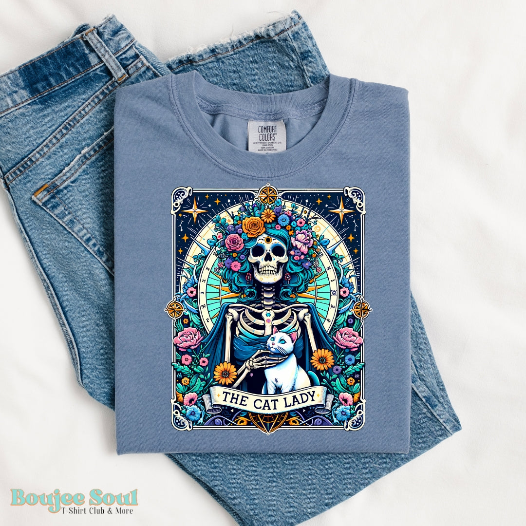 The Cat Lady Tarot Card Graphic T-Shirt Blue Jean