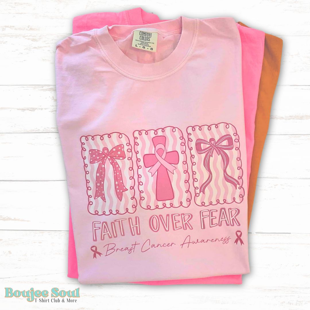 Preppy bows, Faith based, and Pink all come together to make you look cute while you support Breast Cancer Awareness. Each t-shirt is pressed with the softest t-shirts, Comfort Colors.